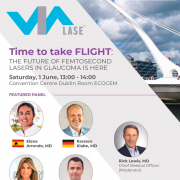 La actividad comenzó con una destacada participación en el marco de la European Glaucoma Society (EGS) en Dublín. Bajo el título «Time to take FLIGHT», un panel de expertos internacionales, incluyendo a las doctoras Elena Arrondo y Marta Ibarz, junto a los doctores Karsten Klabe y Andrew Tatham, debatieron sobre el impacto revolucionario del láser de femtosegundo en el tratamiento del glaucoma.