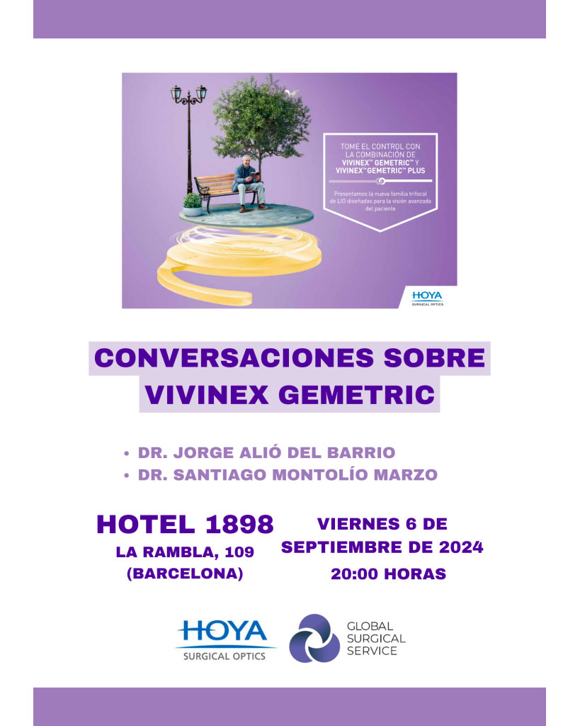 Septiembre comenzará con una cita exclusiva en el corazón de Barcelona. Global Surgical Service y Hoya Surgical Optics organizan una jornada dedicada a la nueva familia de lentes trifocales diseñadas para ofrecer una visión avanzada al paciente.