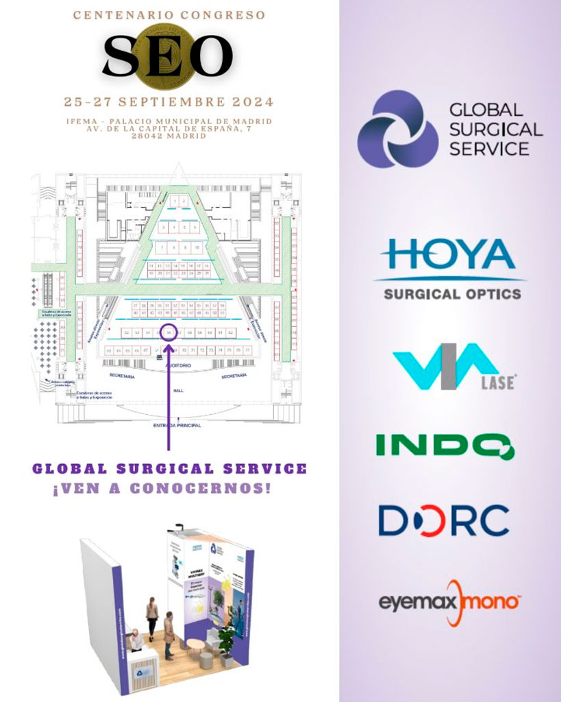 Global Surgical Service tendrá una presencia destacada en el 100º Congreso de la Sociedad Española de Oftalmología (SEO), que se celebrará en el IFEMA – Palacio Municipal de Madrid del 25 al 27 de septiembre. Bajo el lema «¡Ven a conocernos!», la compañía invita a todos los profesionales a visitar su stand comercial, donde presentará soluciones de partners líderes como HOYA Surgical Optics, ViaLase, INDO, DORC y eyemax mono.